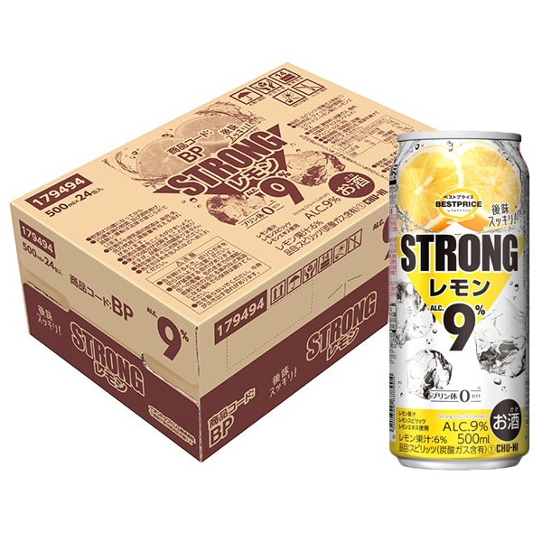 【ケース販売】トップバリュベストプライス ストロング レモン 500ml×24缶