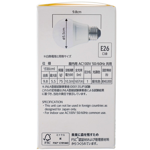 白熱電球と同等サイズ。省エネ法2027年度目標基準値達成でエネルギー消費効率が高く節電に繋がります。長寿命で交換回数が減らせます。