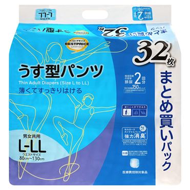トップバリュベストプライス うす型パンツ 男女共用 L~LL 32枚入