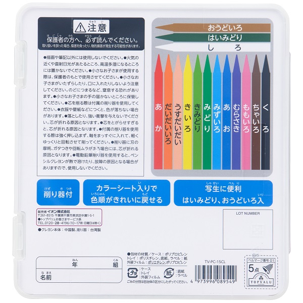トップバリュ ペンシルクレヨン 15色入