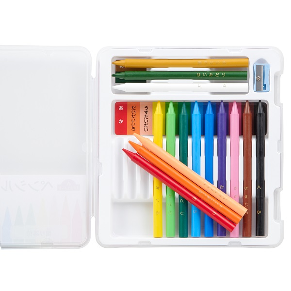 基本色12色+おうどいろ・はいみどり・白。削り器付き。