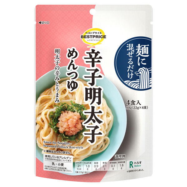トップバリュベストプライス 麺に混ぜるだけ 辛子明太子めんつゆ 1人前×4食入(88g)