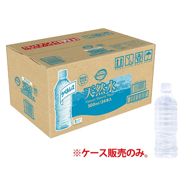 【ケース商品】トップバリュベストプライス ラベルレス天然水 500ml×24本