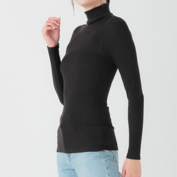 トップバリュ PEACE FIT WARM あたたかよくのびーるフィット 長袖タートルネック クロ S~M レディス