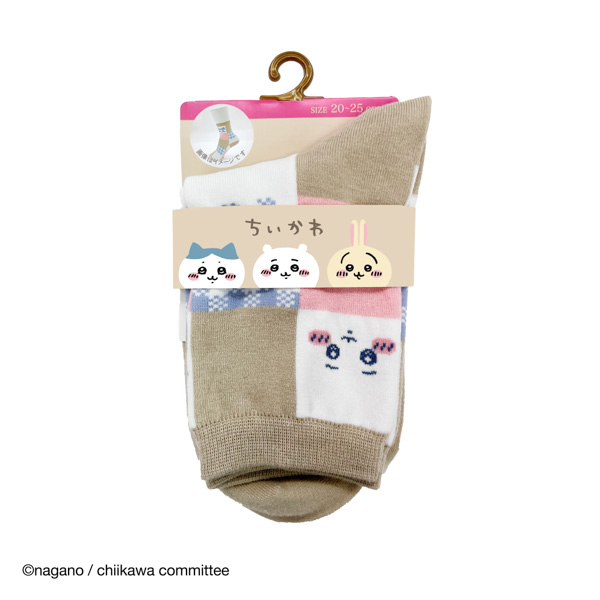 岡本 ちいかわソックス ちいかわハチワレブロックチェック クルー丈 ベ-ジユ 20-25cm