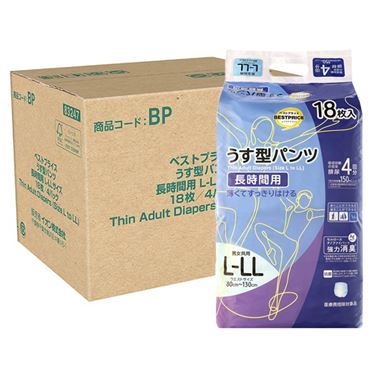 【ケース販売】トップバリュベストプライス うす型パンツ 長時間用 4回分 男女共用 L-LLサイズ 18枚×4パック