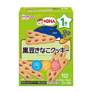 【1歳頃~】和光堂 1歳からのおやつ+DHA 黒豆きなこクッキー 2本×6袋