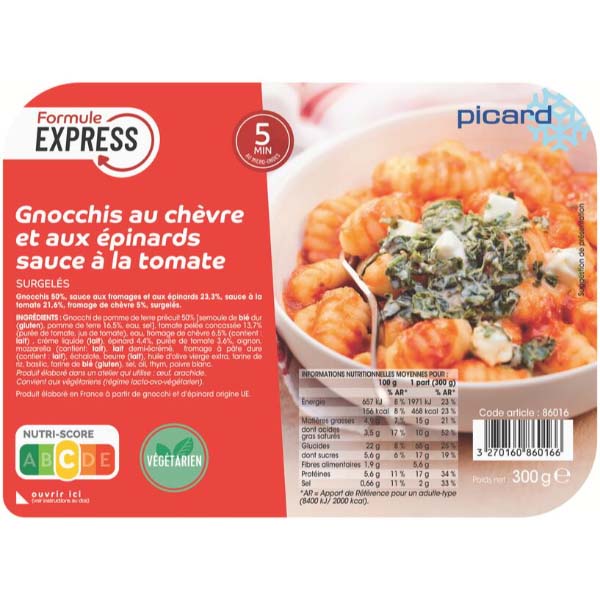 picard(ピカール)シェーブルチーズ、ほうれん草とトマトソースのニョッキ 300g