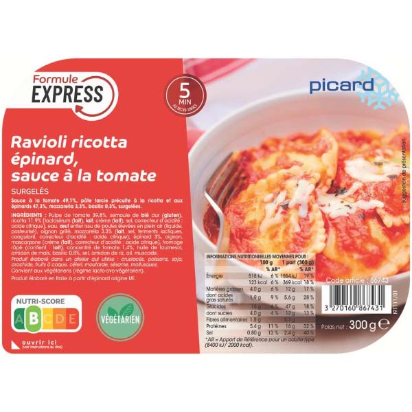 picard(ピカール)リコッタとほうれん草のラビオリ(トマトソース)300g